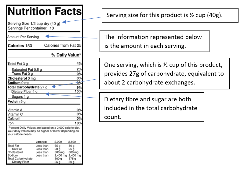 If you eat packaged foods, you can figure out how much carbohydrate is in your food from the “Nutrition Facts” label. The label is found on the outside of the container.